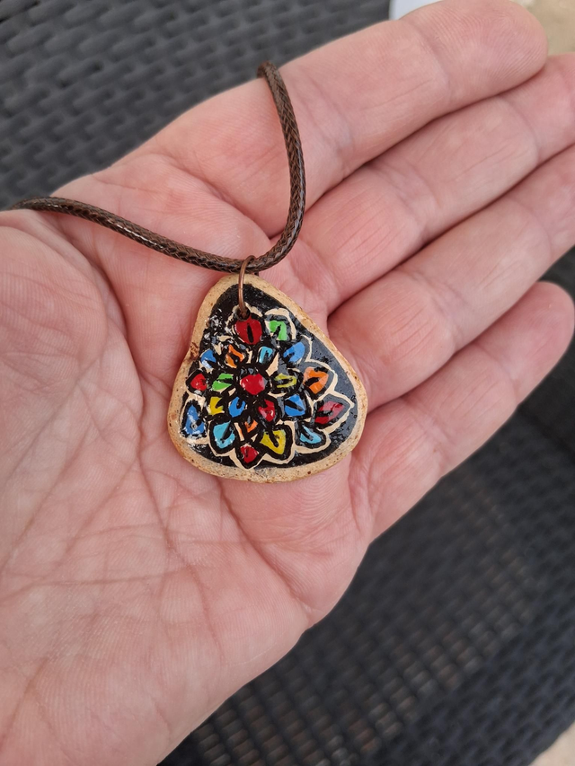 Ensemble collier en galet et boucles d'oreilles en bois mandala