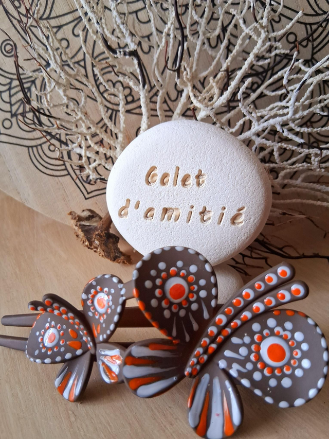 Pince à cheveux mandala papillons marron/blanc/orange