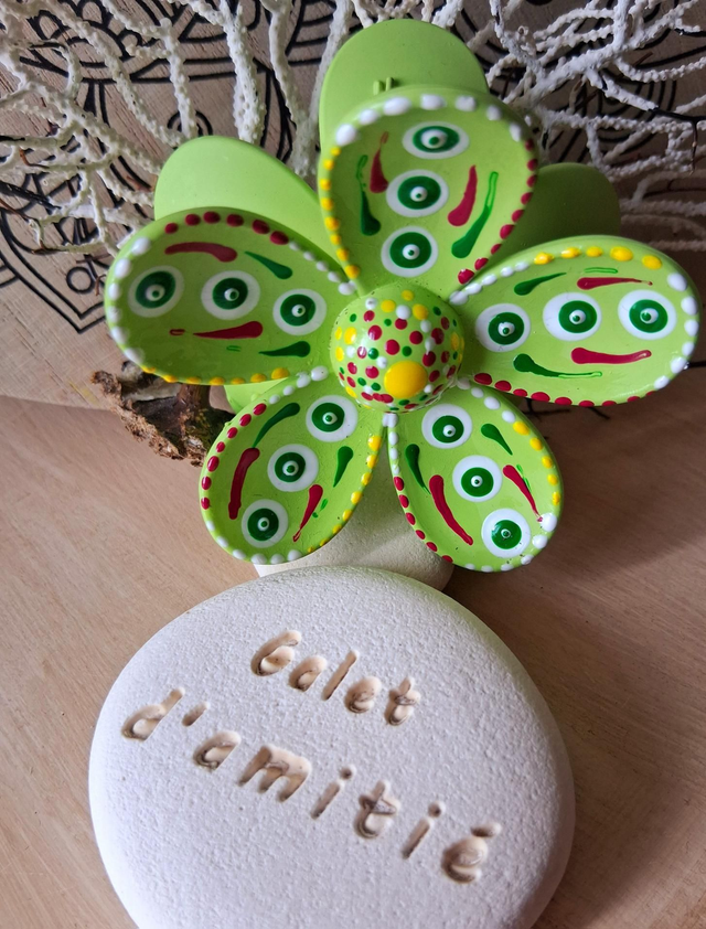 Pince à cheveux fleurs mandala verte