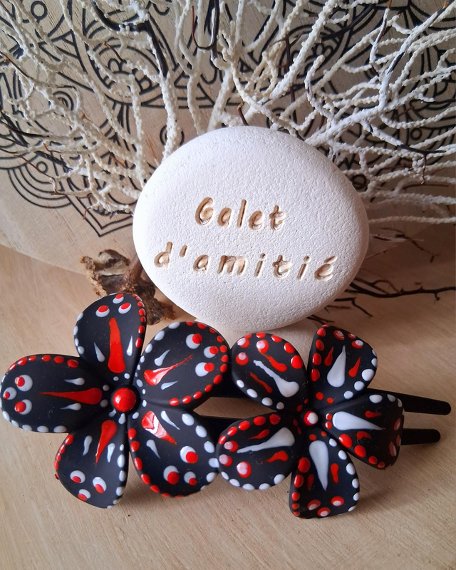 Pince à cheveux mandala noir/rouge/blanc